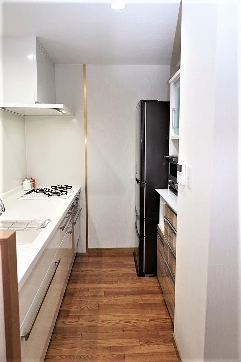 | 主なリフォーム内容 | キッチンは、リクシル「リシェル」幅255㎝ ※垂れ壁撤去および、それに伴う腰壁造作 ※クロス張替え |