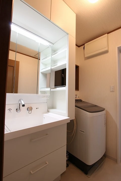 洗面台はリクシルのミドルグレード「ピアラ」を採用しました。ピアラの特長はそのコストパフォーマンスの良さ。比較的に費用を抑えられる一方、使いやすさや収納量も充実しております。