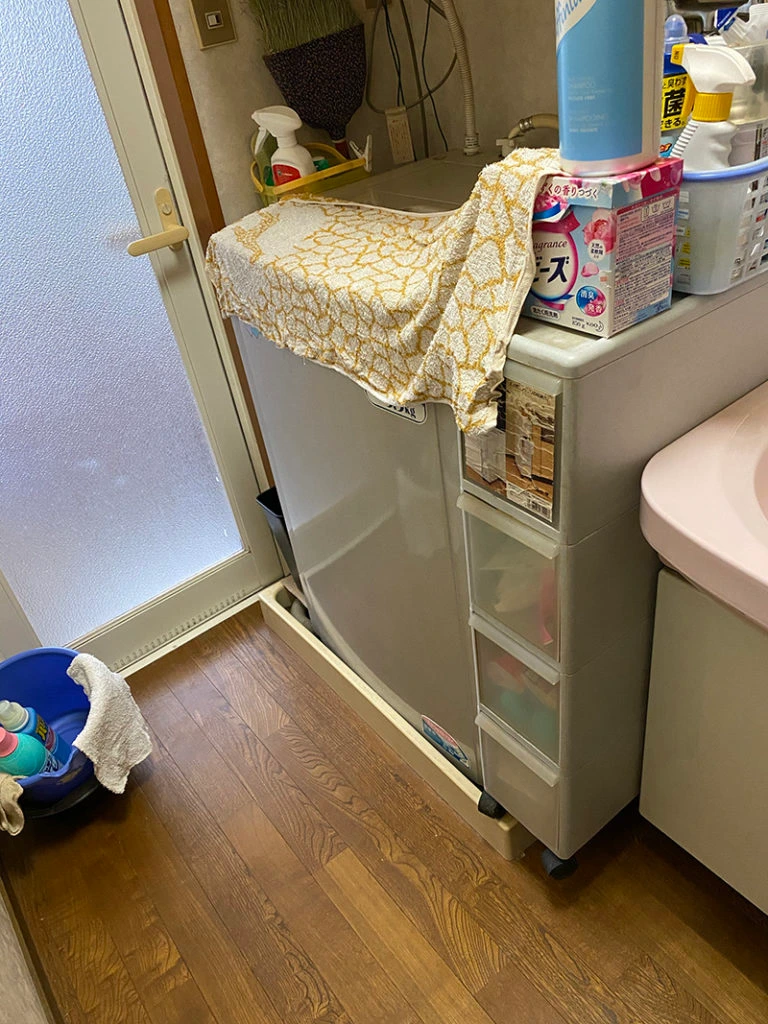 観音開きのキャビネットは奥のものが取り出しにくく、デッドスペースになりがちです。引き出し式なら奥のものが取り出しやすく、これまで床置きしてしまいがちだった洗濯用品などもすべてしまえるようになりました。