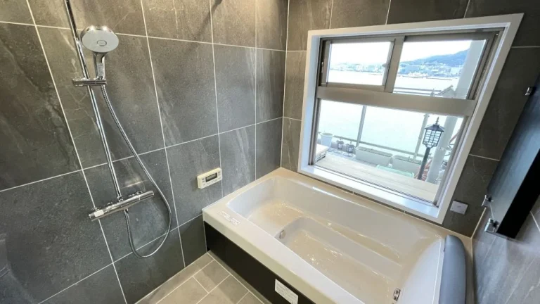 こちらのお客様は、ジェットバスをオプションで選ばれました。肩に柔らかくお湯を流す肩湯は快適でしかもしっかり身体を暖めてくれます。ジェットバスはエアを含まない水流で音が静かなタイプなので、マンションでも騒音が気になりません。