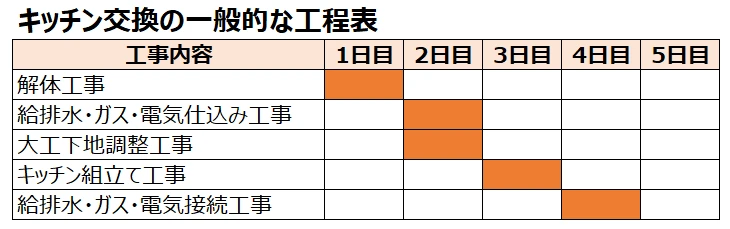 キッチン交換に必要な工事期間は何日?